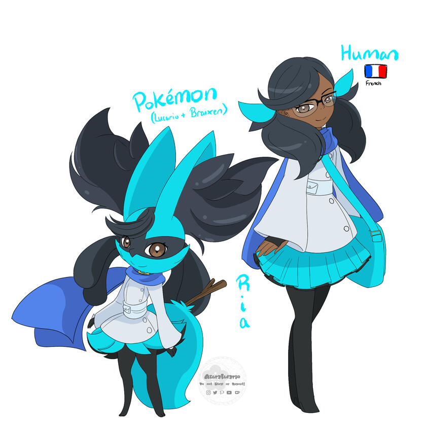 An adventurous and daring Pokémon with a brain full of food, creativity and curiosity. Aside from what’s on her mind, she does all she can to protect her family and friends, breaking her limit of strength to succeed. Aside from using her flaming stick, Ria carries along a miniature device, named Ka.Z., which is used as both a weapon and transportation. She settles at home with her mate Rage, a Lucario.