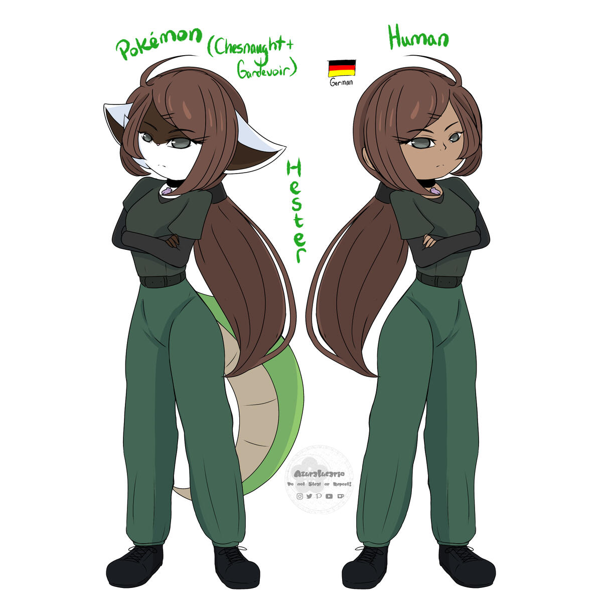 Originally, Hester was once a country-fashioned Chesnaught. Now, her edgy self depicts her as serious and no-nonsense. She is very strict, while previously being lenient. Her behavior towards others is considered to be professional yet a little scary, but when it comes to being a certain Incineroar, she tends to be a little bitter and inadmissible of her feelings towards him.